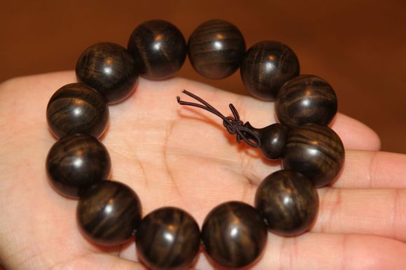 我们都知道金丝楠木的美在于它的动感立体的纹理和璀璨的金丝。那么金丝楠木手串的纹理有哪些呢?因为金丝楠木手串并不像金丝楠木家具那样纹理丰富。因为珠子本身比较小,一般的纹理很难在手串上展现。即使我们常说的水波纹等手串,那也是需要密集的上等金丝楠木水波料才能制作出来。因为要在2.0CM大小的珠子让它体现水波纹理,就已经不容易了。因此我们可以理解,为什么金丝楠木手串会随着纹理的不同,价格成陪的上升。因为在珠子上有两道甚至三道的水波纹,那么它需要的木料就接近极品的水波纹木料。成本更是翻番。很多大的商家是不舍得用这种料来作一个只买几千块钱的金丝楠木手串的。这也是为什么极品金丝楠木手串极为少见的原因之一。